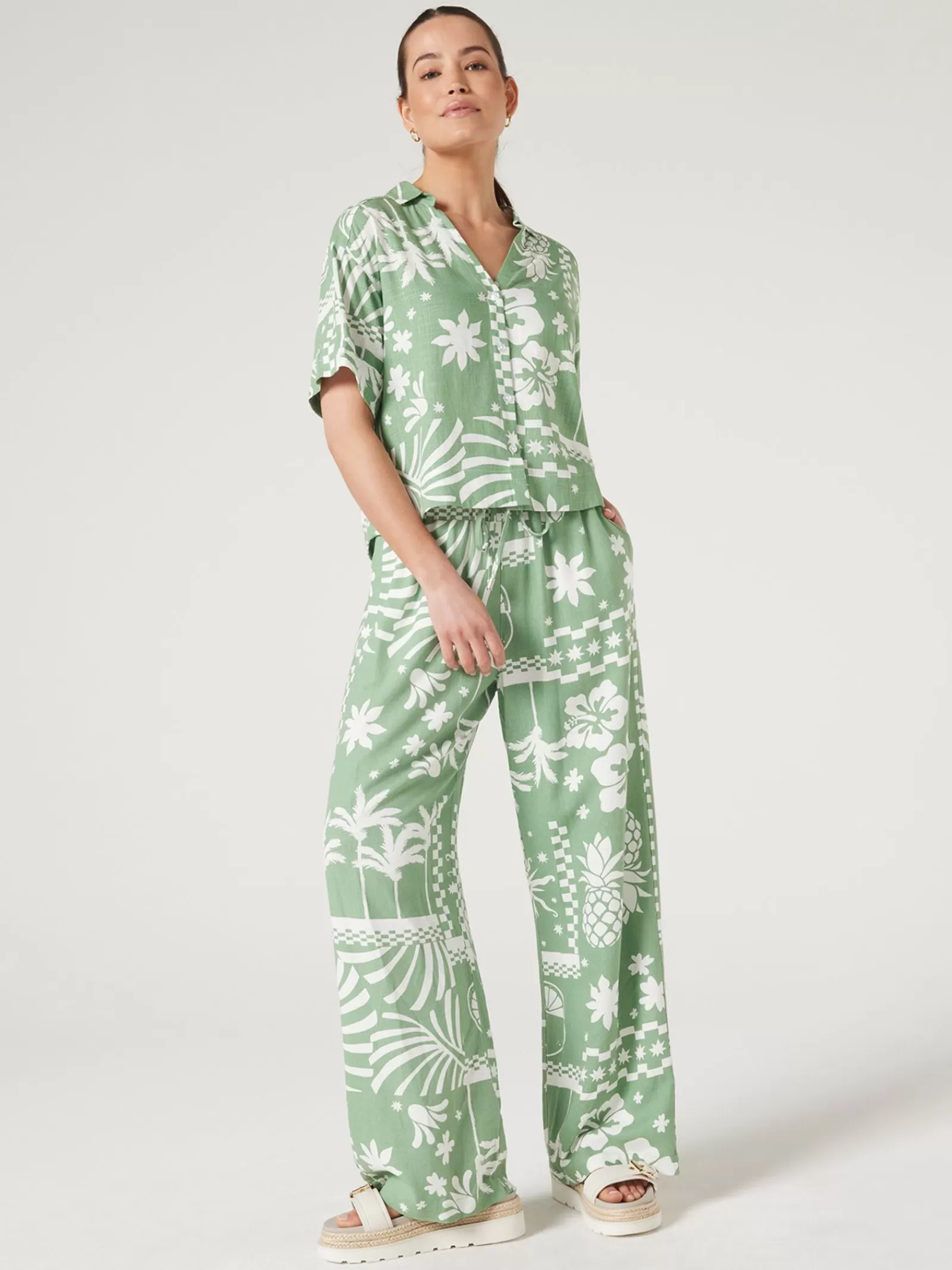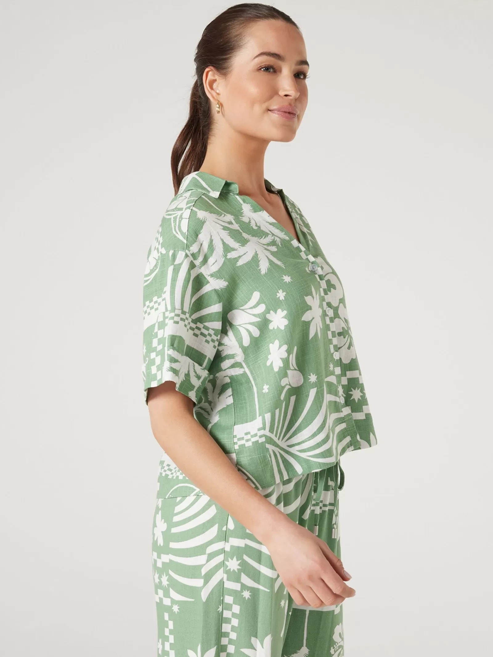 Cut to a boxy, cropped fit from a lightweight linen fabric, this summer-inspired button-up shirt is flattering and casual for weekend-ready vibes. Featuring a dropped shoulder and collared neck, this style can be worn open over a tank, or buttoned up with jeans.