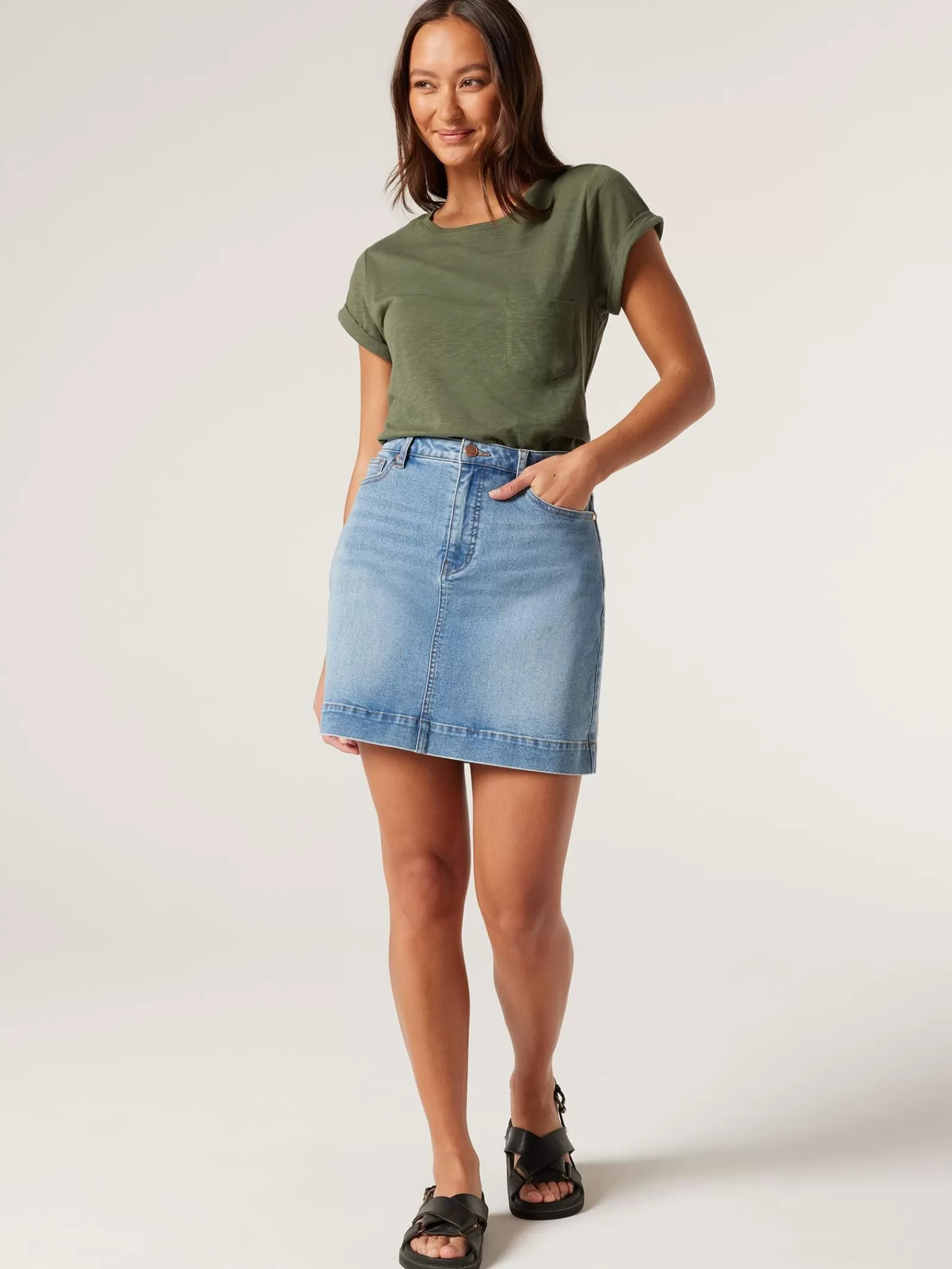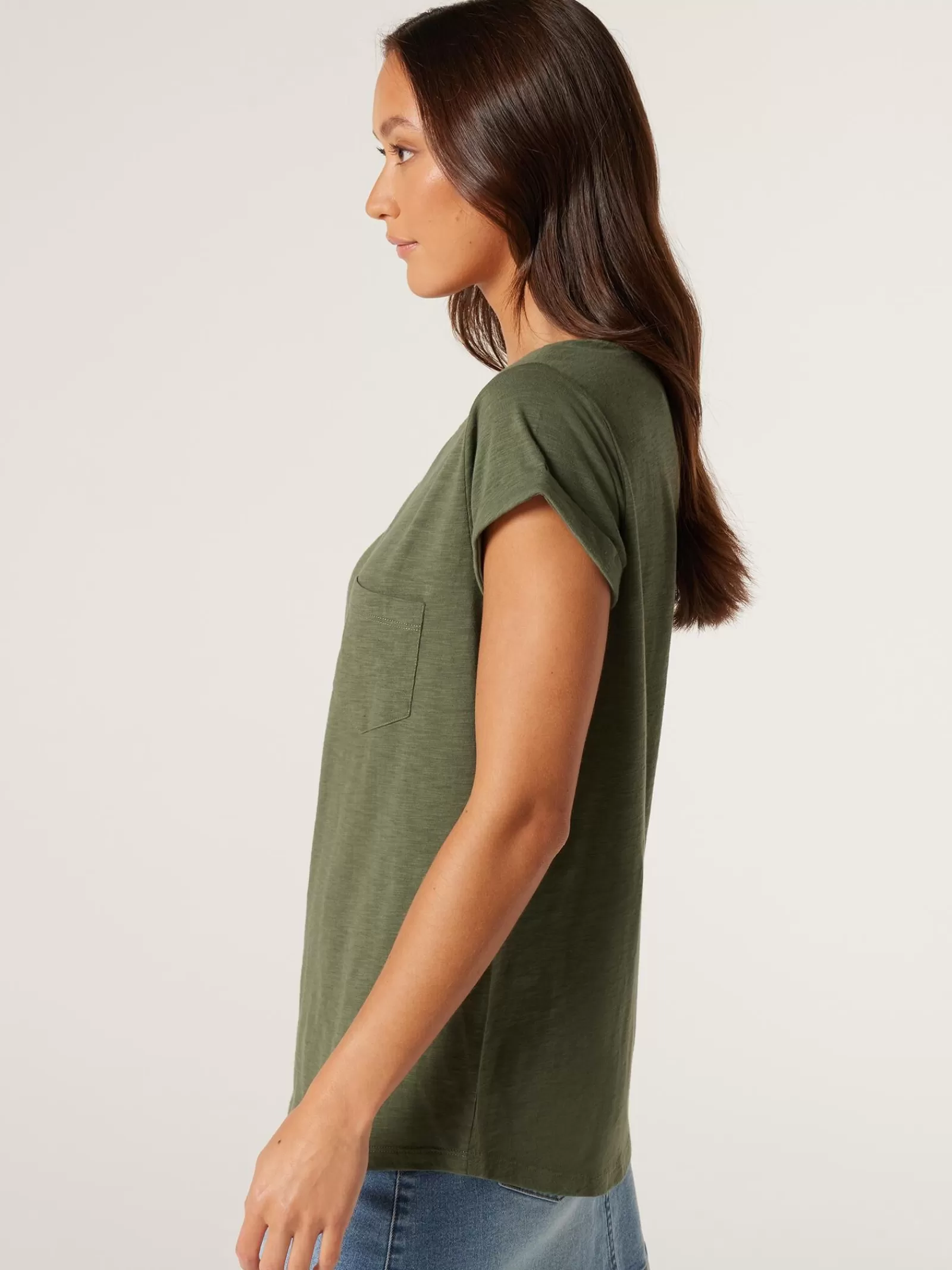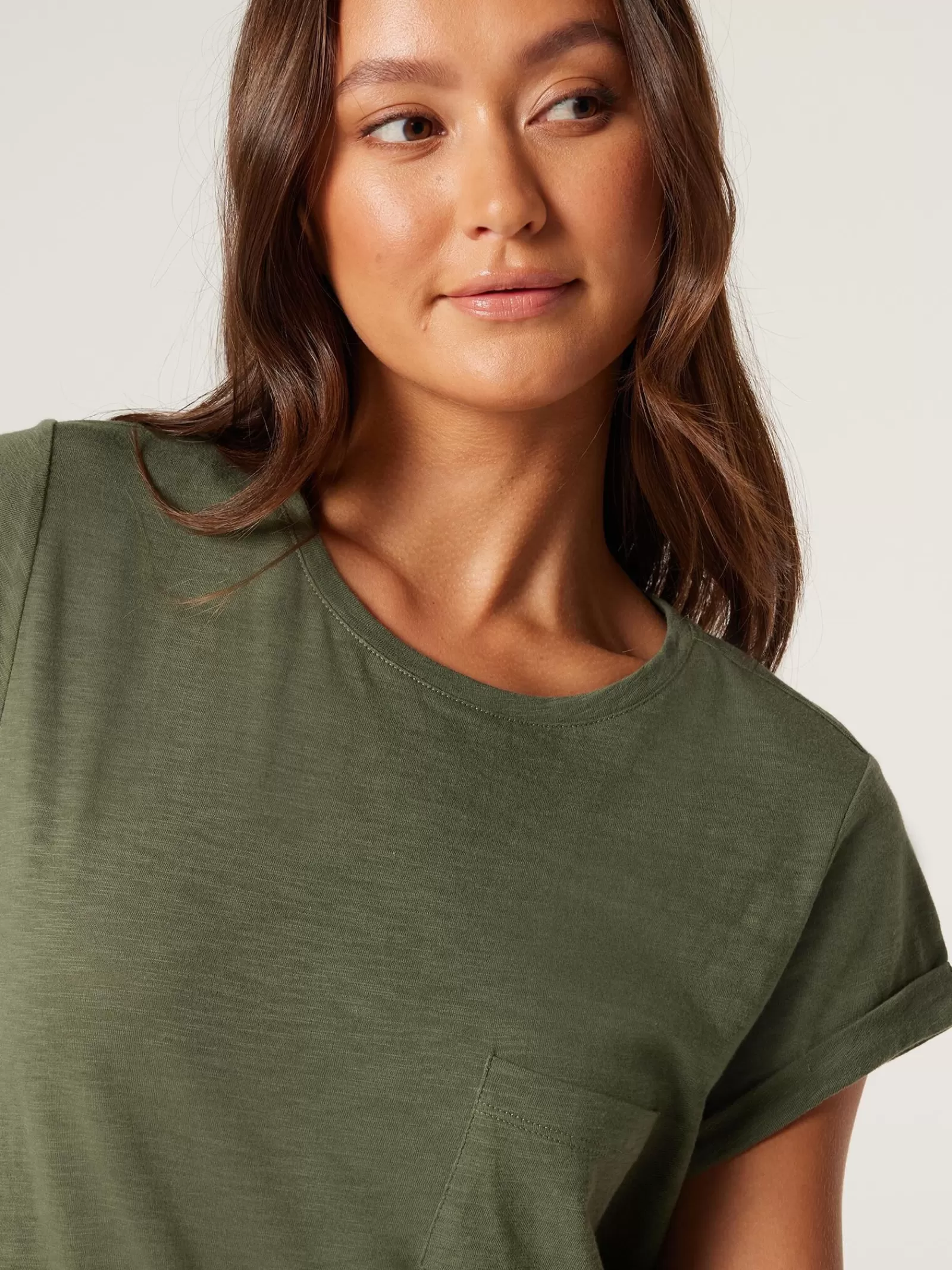 Flattering in a regular structure with wide crew neckline, this essential tee is made from pure cotton in a breathable composition with curved hem and chest pocket. Tuck it into your favourite jeans for endless transeasonal styling options.