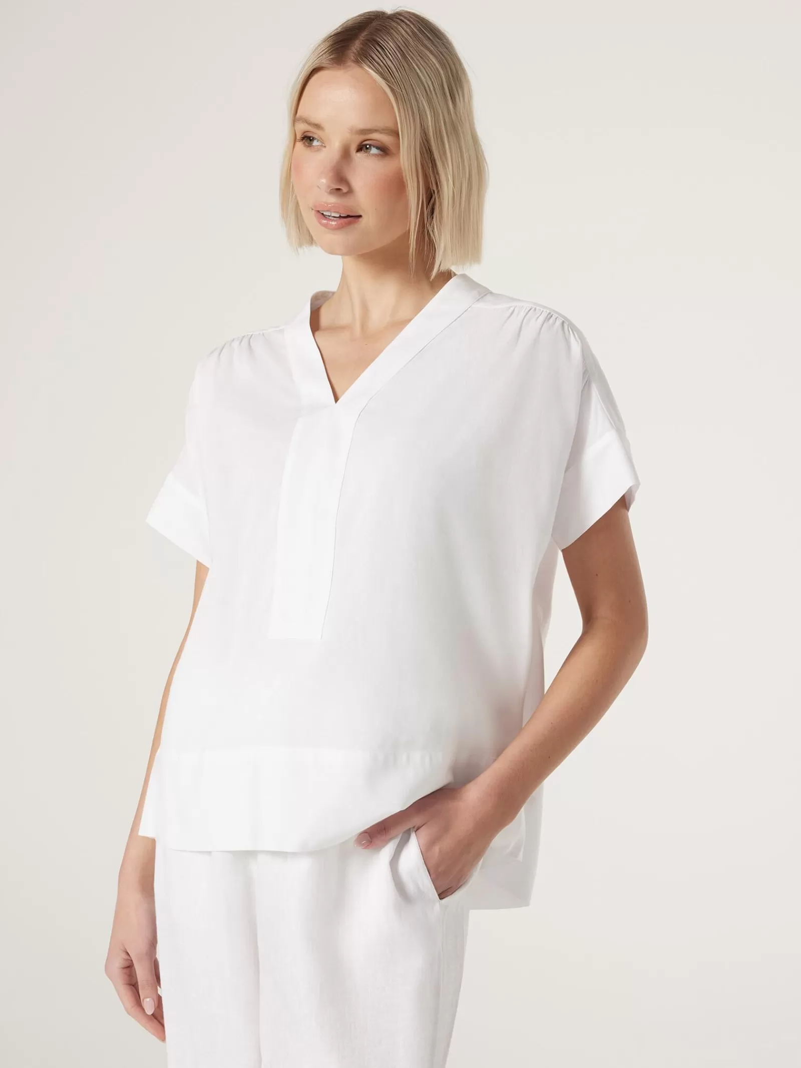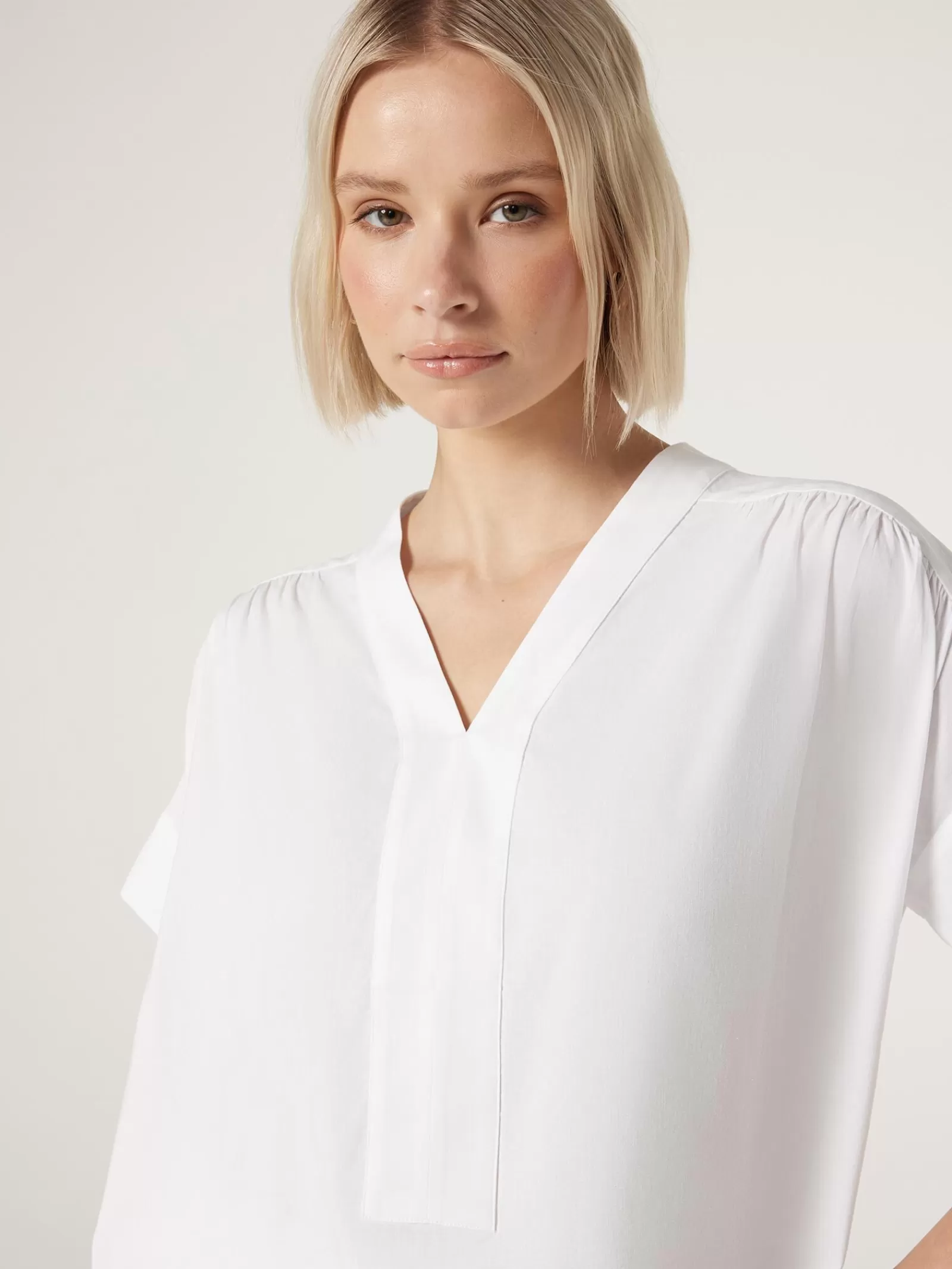 Perfect to throw on with your favourite denim all year round, this cotton top is relaxed in structure with wide sleeves …